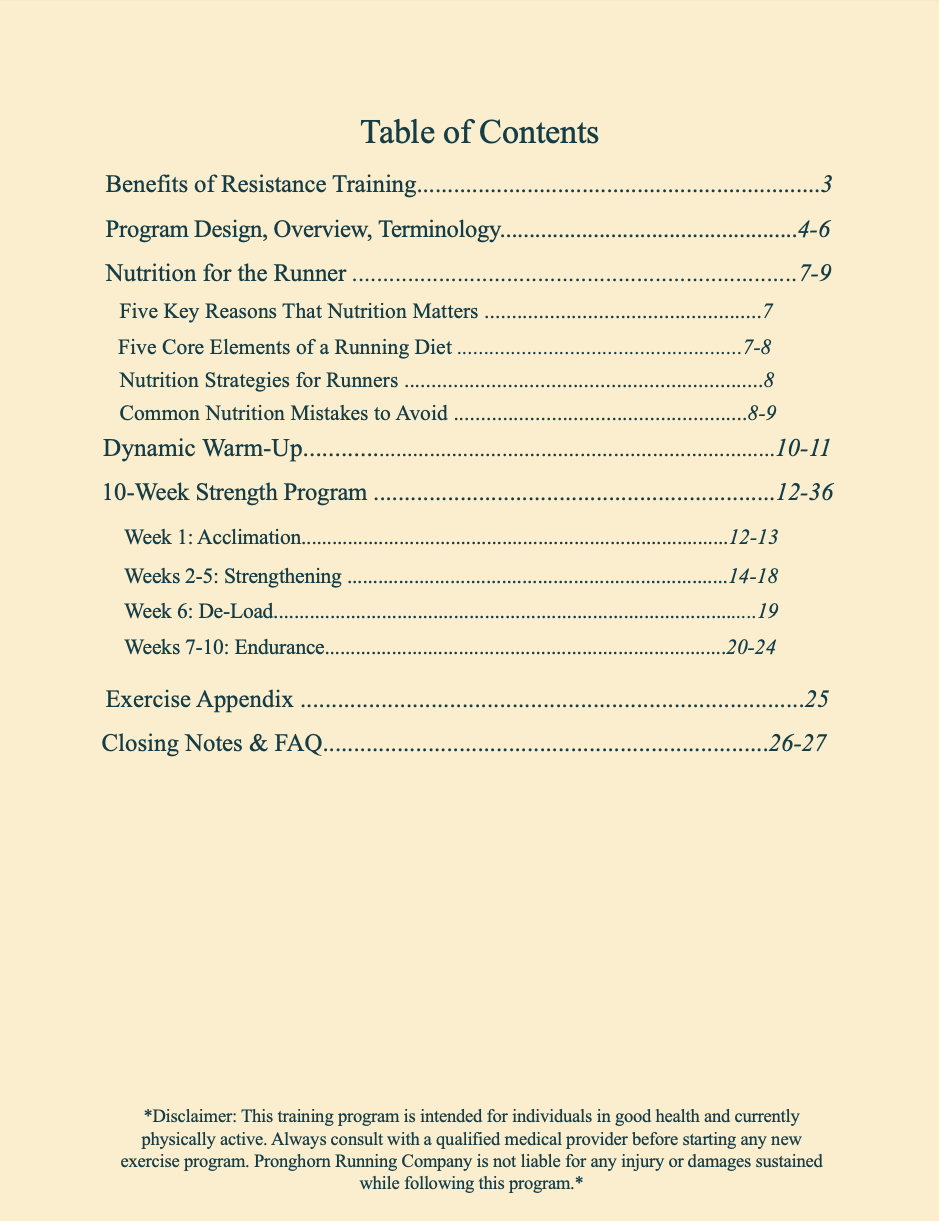 Runners need more than just miles to perform at their best. Strength training is the missing link that builds durability, prevents injuries, and makes you faster and more efficient. That’s why we created the Pronghorn Express 10-Week Strength Program—a quick, runner-specific plan that fits smoothly into your training without taking over your schedule. Each workout takes less than 30 minutes, requires only dumbbells, a resistance band, and a sturdy surface, and is designed to complement your running—not replace it.